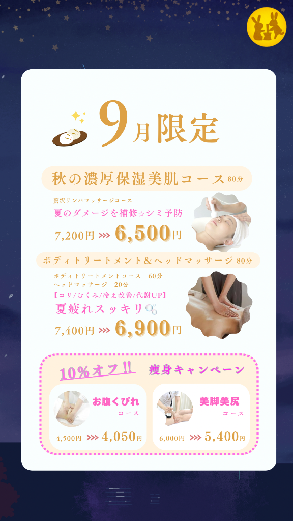 今月は夏の紫外線によるダメージやお疲れをリセットできる贅沢なメニューをご準備しました✨