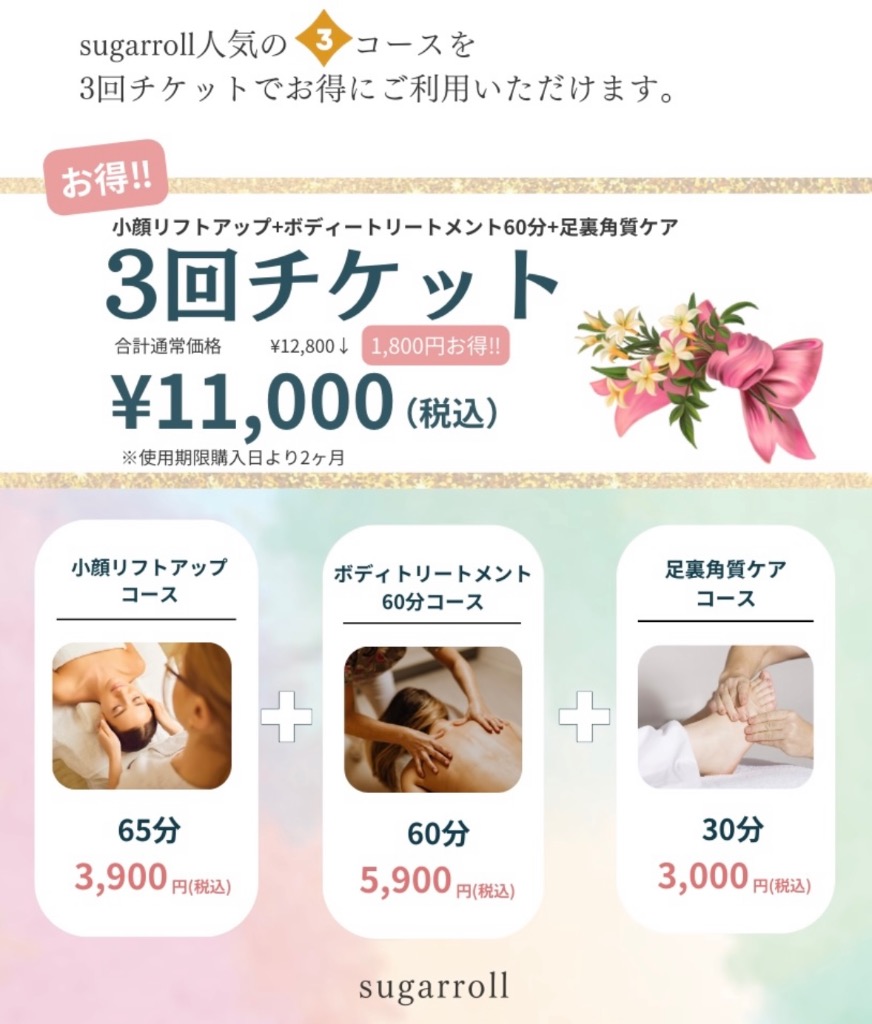 エステ: https://www.instagram.com/sugarroll__beautysalon?igsh=MXY1NHlvaGpiN3Vkdg%3D%3D&utm_source=qr