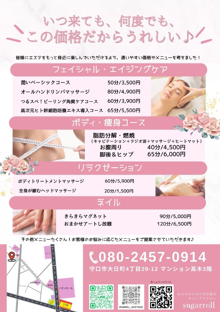 エステ: https://www.instagram.com/sugarroll__beautysalon?igsh=MXY1NHlvaGpiN3Vkdg%3D%3D&utm_source=qr