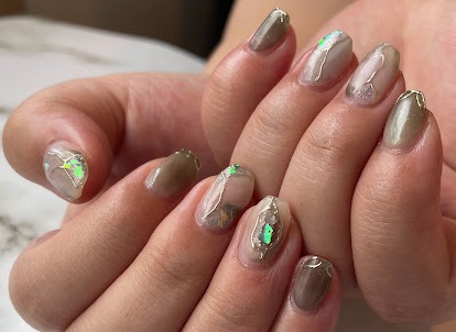 今週のお客様は緑ときらきらが好きなお客様。シアーな感じもいれつつ宝石感も交えてなんとも言えない可愛さに仕上がりました✨